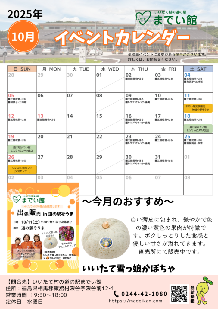 いいたて雪っ娘かぼちゃや特産品を対面販売いたします!